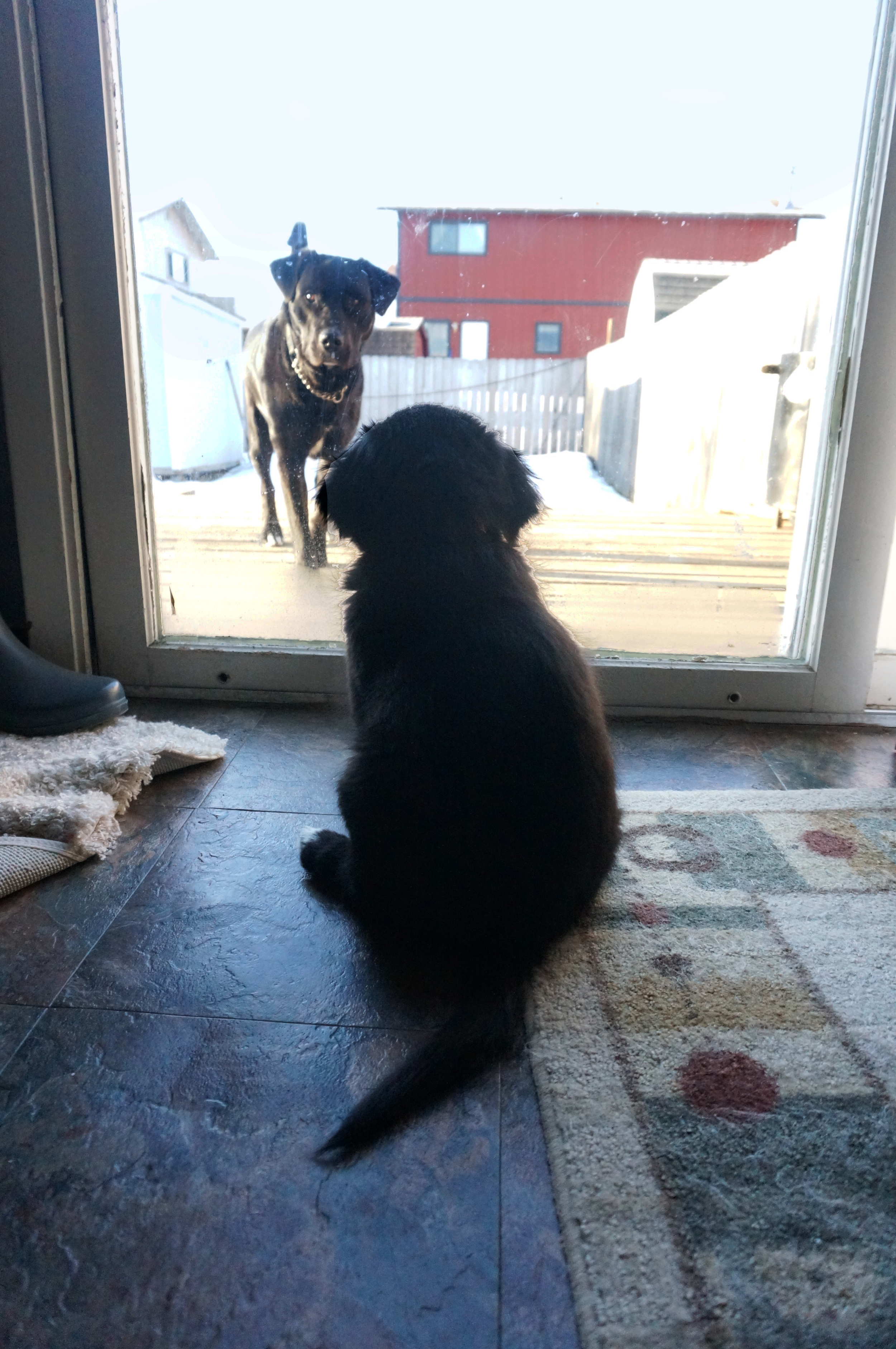 Puppy-sitting was so much fun. Especially because Kobuk was enthralled with anything and everything our dog, Ruger, did. I loved this shot of them staring at each other.