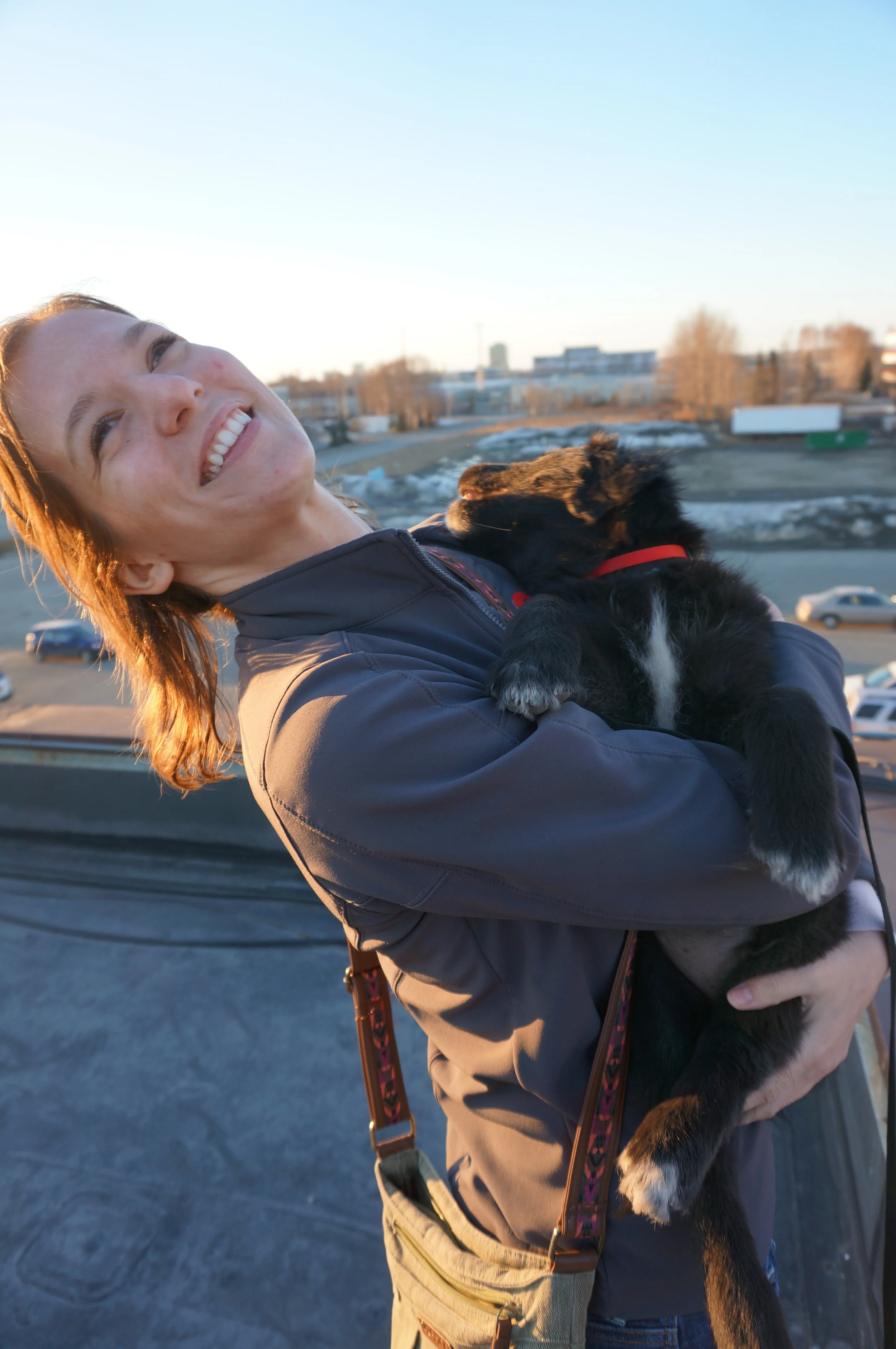 The look on Reba's face in this photo-- even while her puppy, Kobuk, tries to bite her is pure joy. I love this shot.