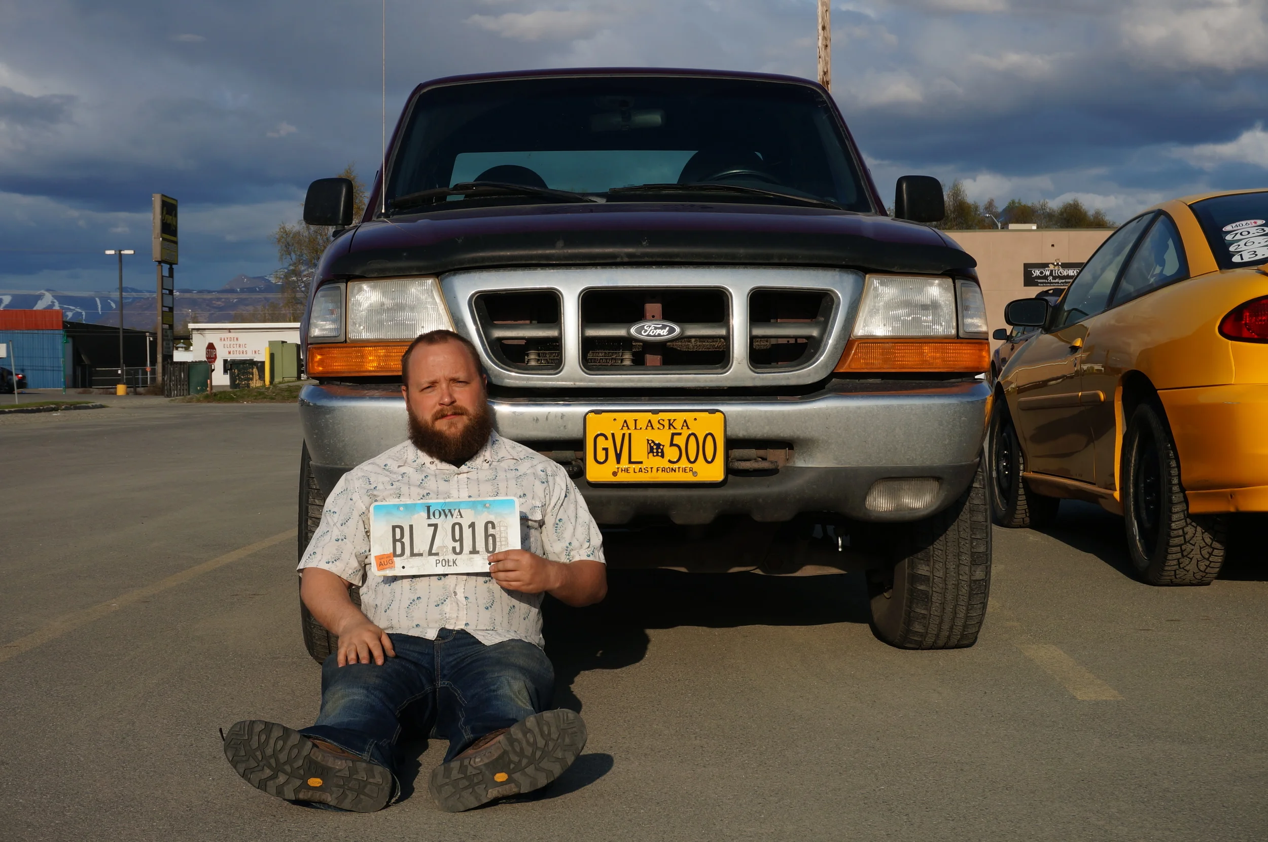 Kenny made it official: he changed from Iowa plates to an Alaska one. I love capturing small milestones like this.
