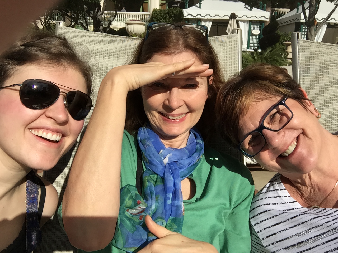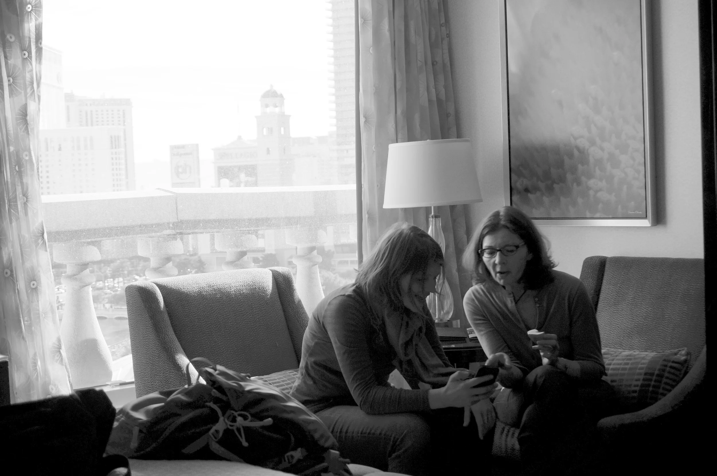 I caught this moment of Laura and my Mom sitting in one of our fancy-shmancy rooms after Laura just arrived. It's always fun to capture the first few moments after not seeing each other for awhile. Laura had to show off her latest cute puppy videos.