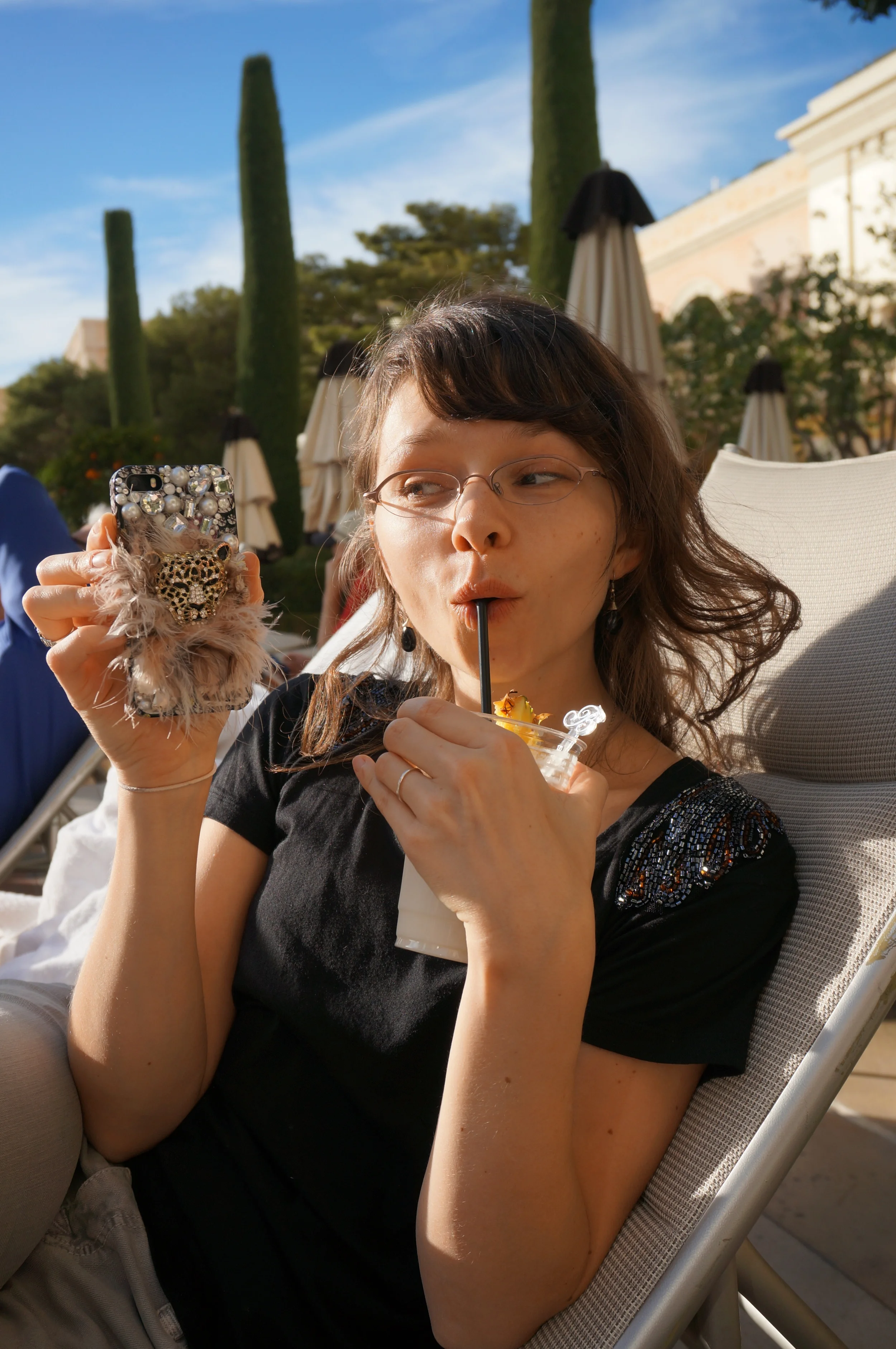 Emily brings out this amazing gaudy phone case every time we go to Vegas. It has gemstones, faux fur, and (naturally) a glitzy leopard head. Nothing says Vegas like rhinestone leopards and pool-side Pina Coladas.