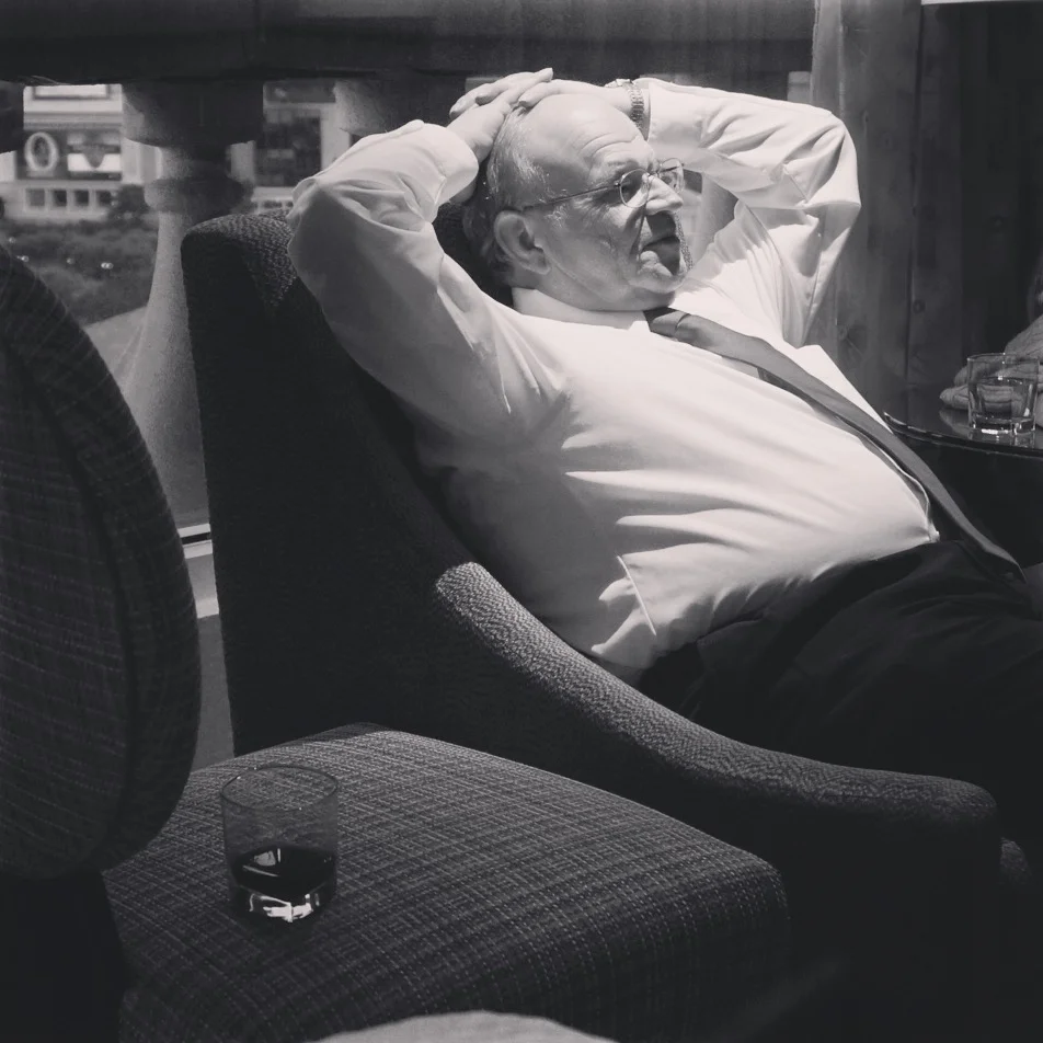 I feel like my dad looks like a President or Winston Churchill in this photo. I loved the lighting and his drink on the chair next to him.