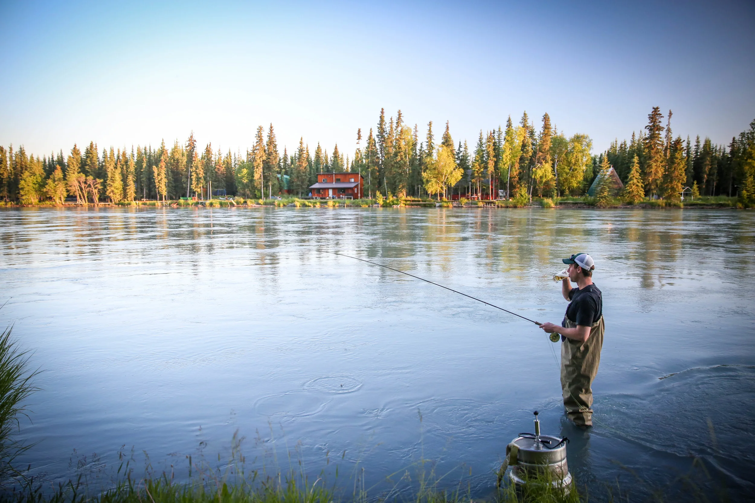 Except for the occasional boat passing by, we were the only ones on the river. Their property stretches right to the riverbank, and a speaker system plays music while you fish. It was actually quite relaxing, and even fun—though I’m sure it didn’t hurt that we put the leftover wedding keg right in the water to cool down.