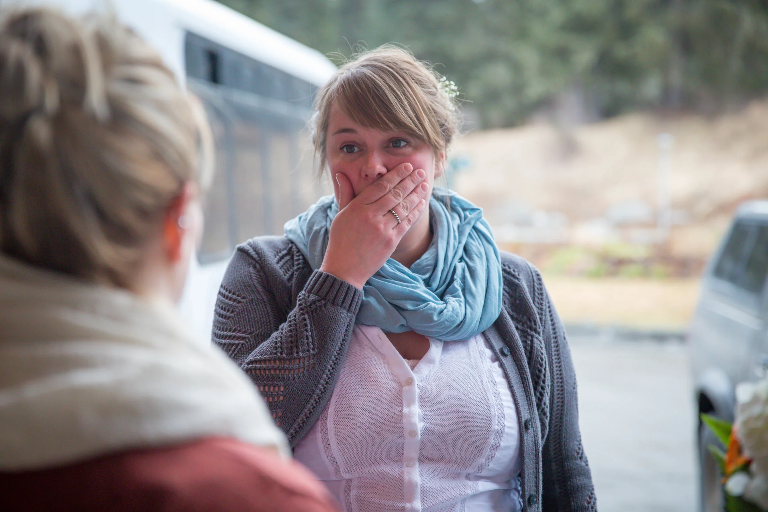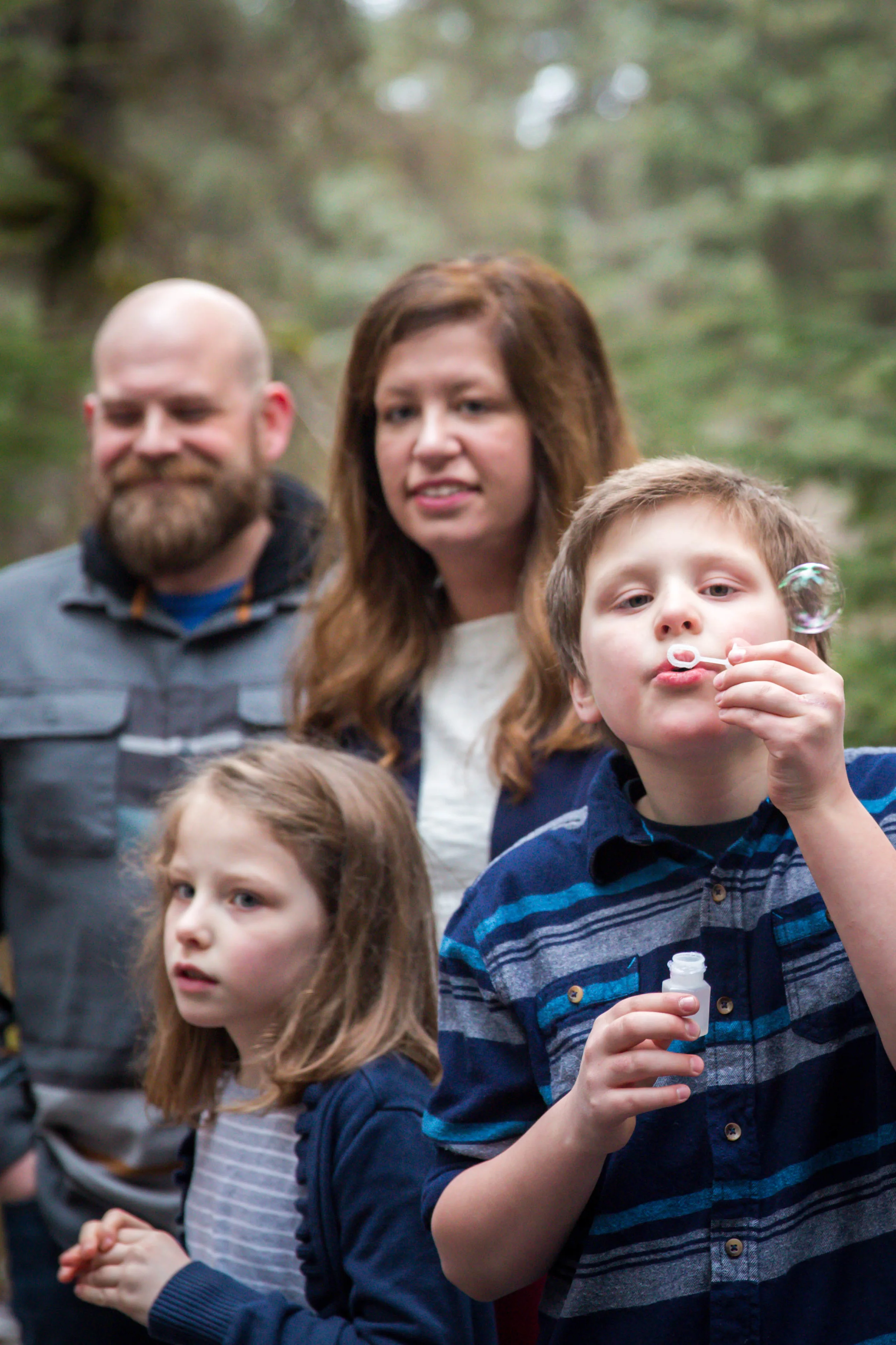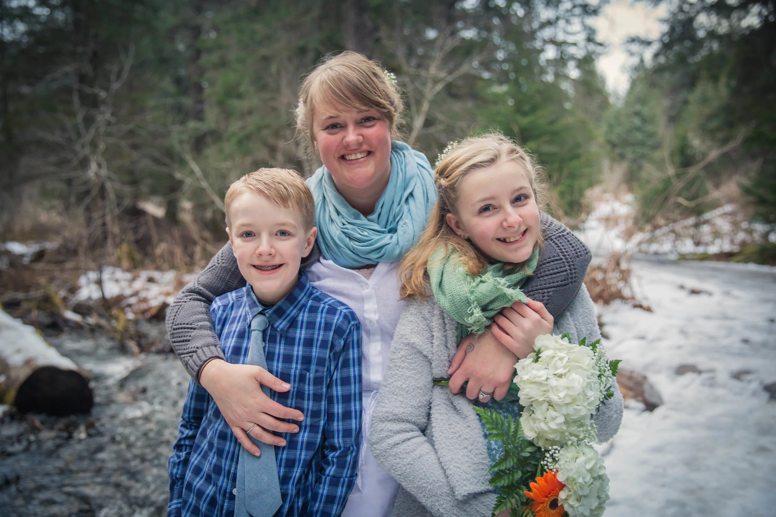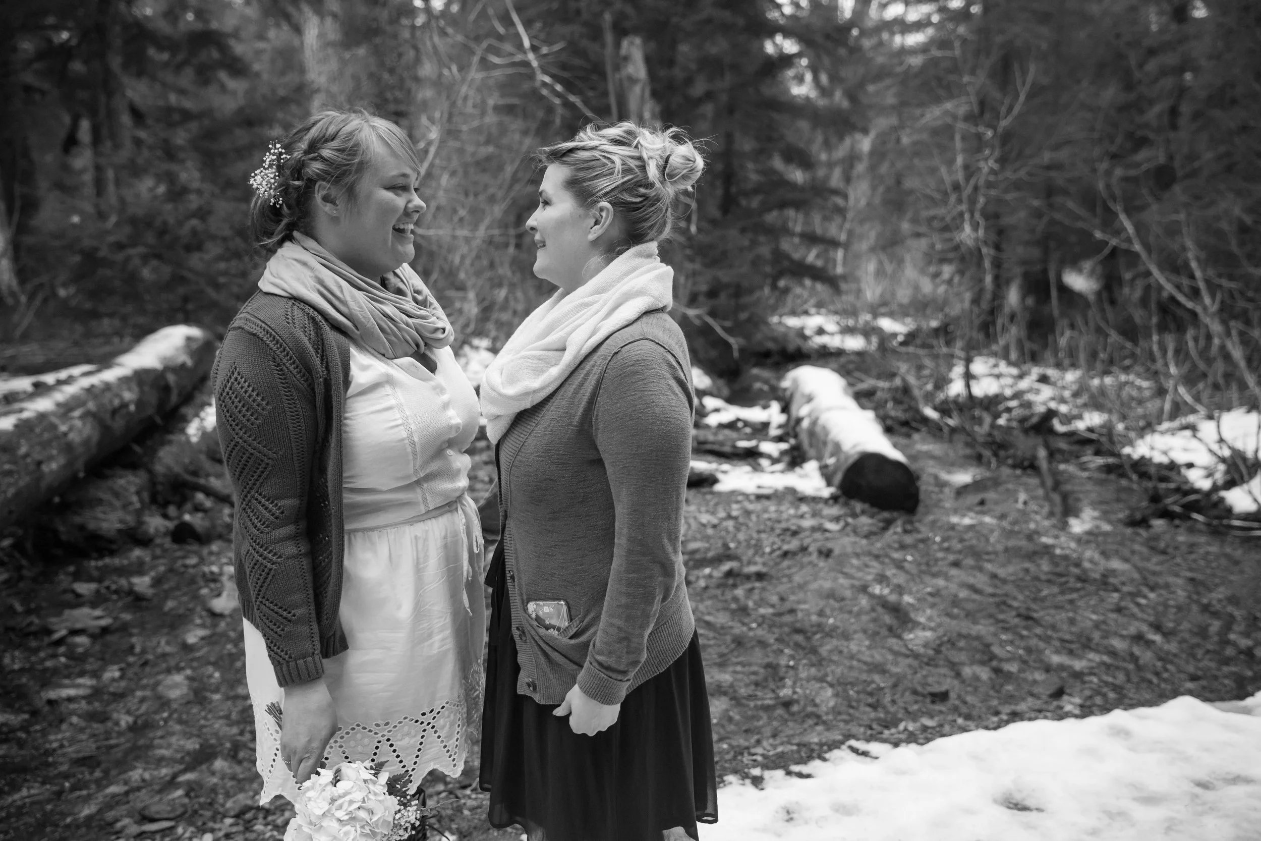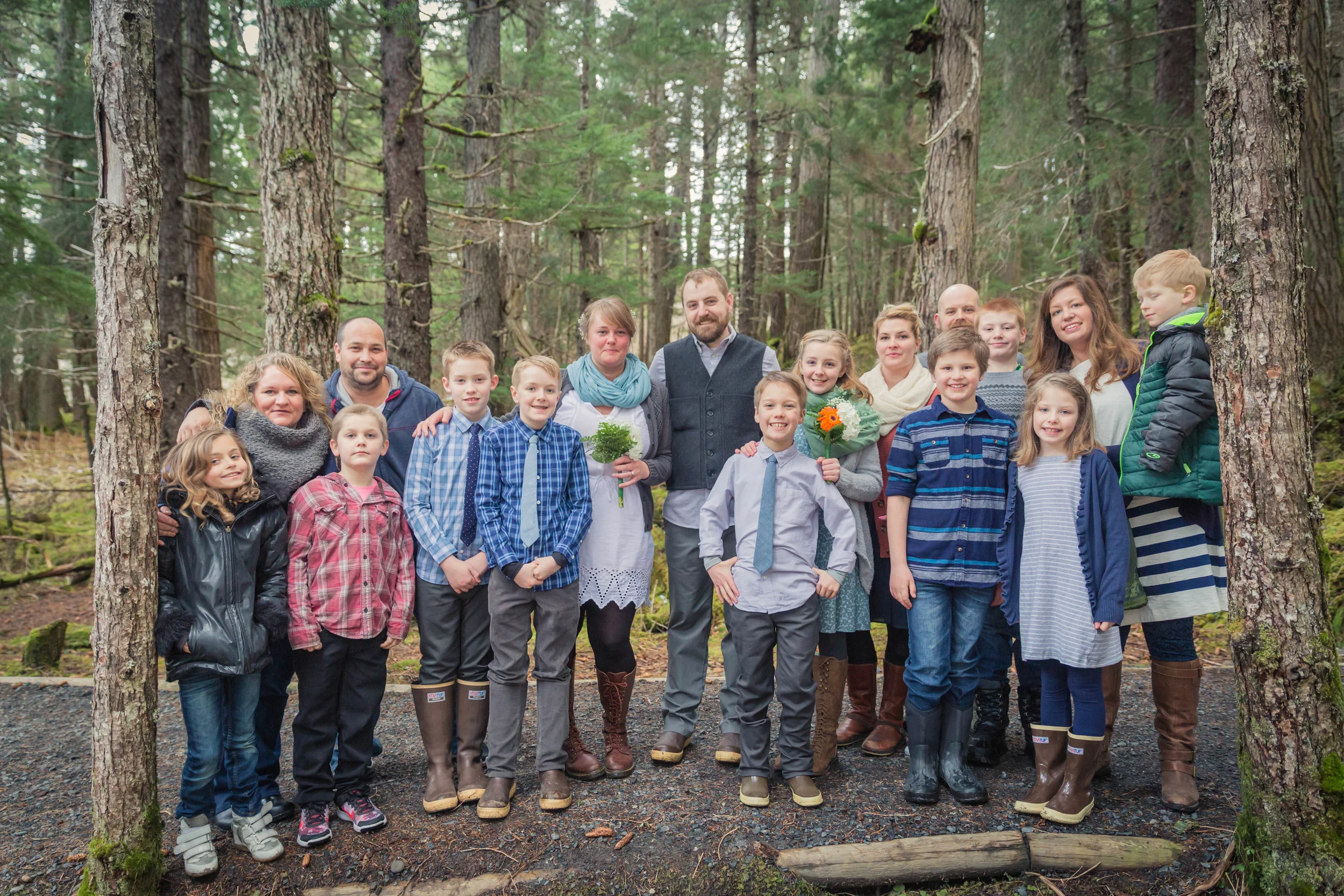 But this is what I loved about Kerry & Patrick’s wedding! There were a few moments of “what are we going to do?” looks exchanged, but then the problem solving started. Everyone was dressed for an outdoor Alaskan wedding, so we made use of the stunning Winner Creek Trail nearby. It was a short walk into the woods before we came to a bridge over a little creek, and everyone realized this was more perfect for the beginning of Kerry & Patrick’s marriage than the original plan.