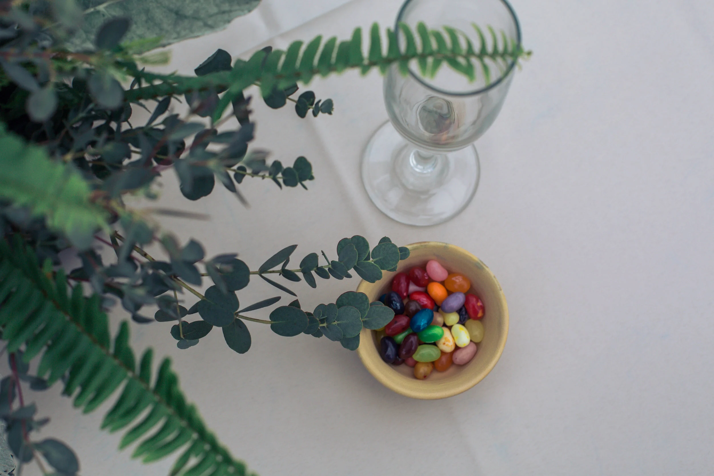 The bride's sister made all of these little clay pots for the wedding favors, and they were filled with Lindsey's all-time favorite candy: jelly beans.