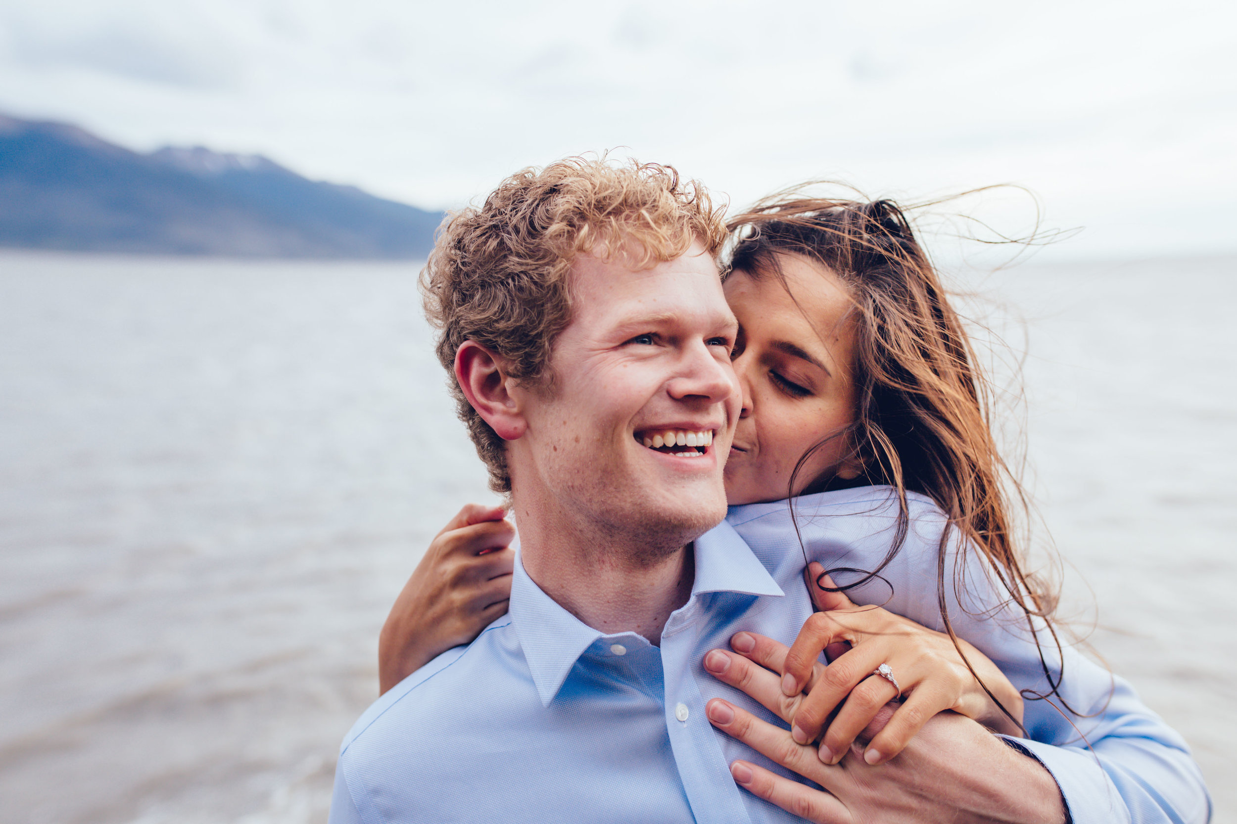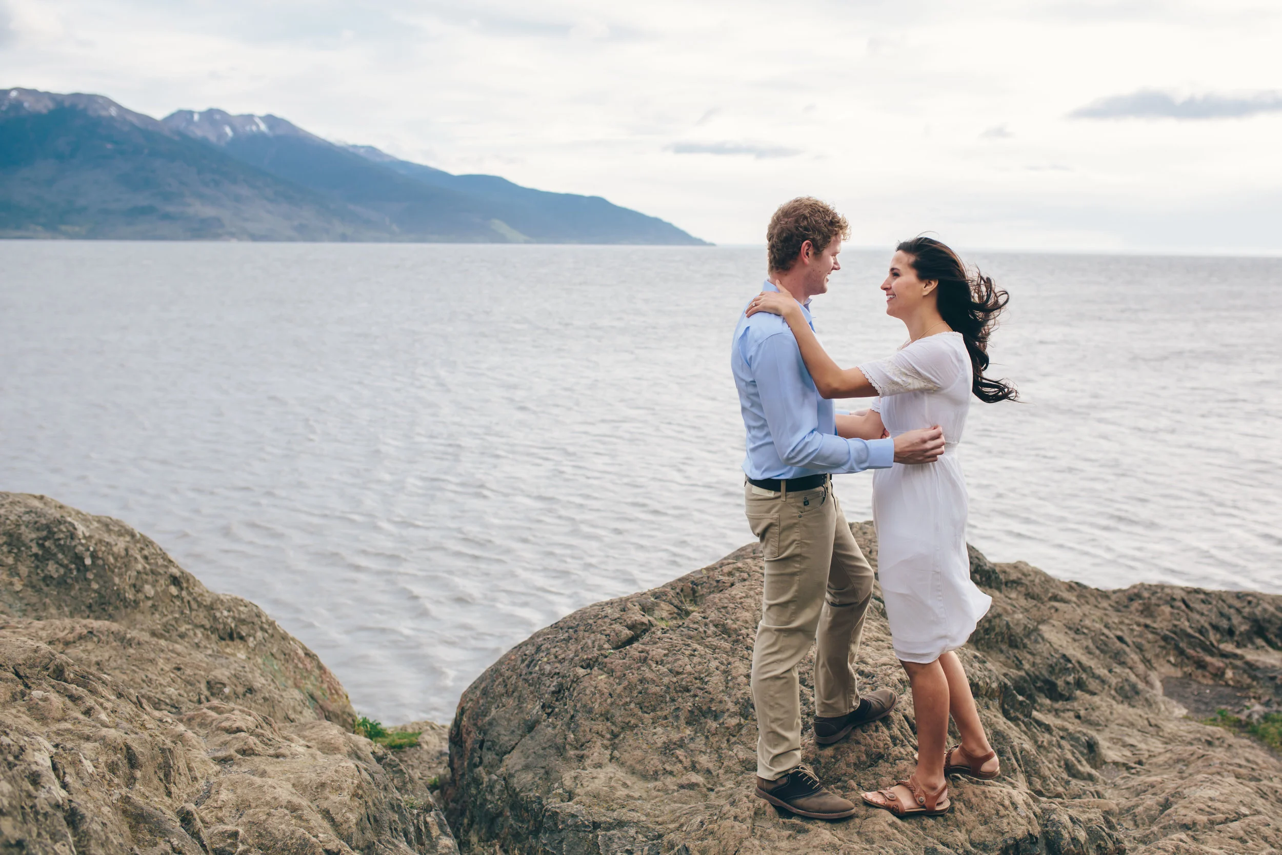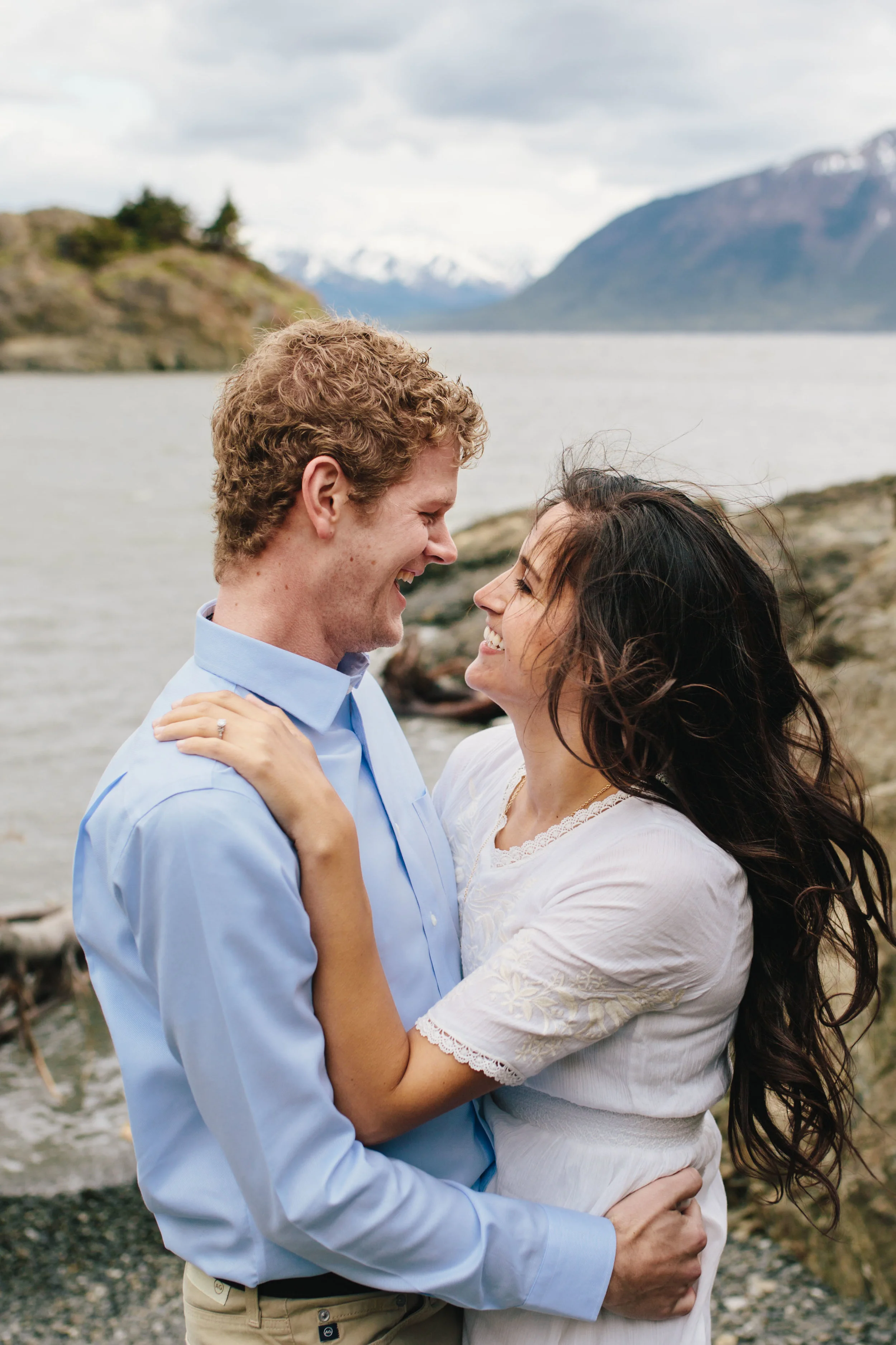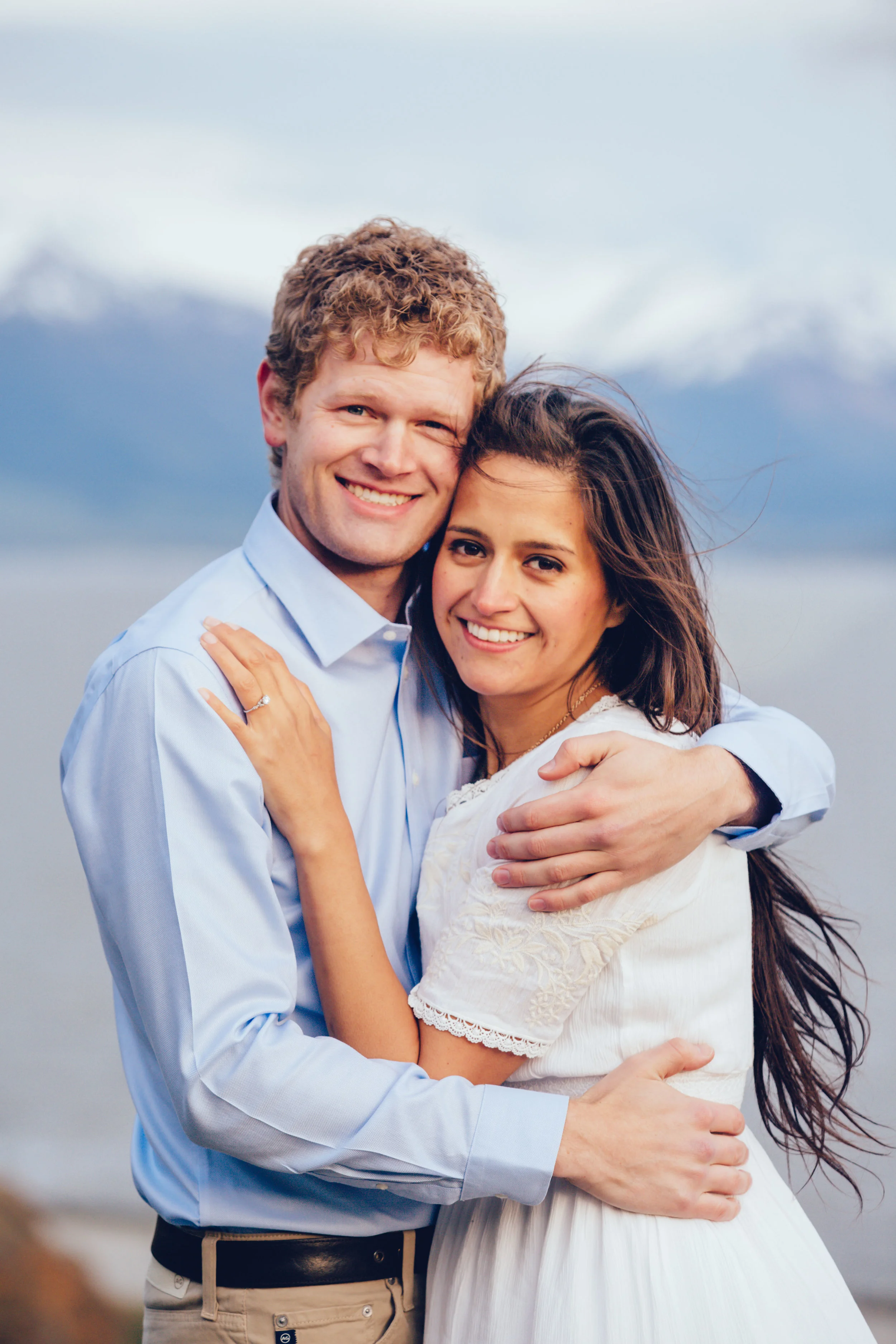 I met Hunter and Ashleigh at Beluga Point on a perfect, blustery evening. Cold-ish nights in May with overcast skies are some of my favorites, and my favorite to take photos-- which makes me a bit odd, I guess. But Hunter and Ashleigh were right there with me. "We're up for anything!" Hunter said (though sweetly grabbing a big puffy coat for Ashleigh before leaving the parking lot). Ashleigh told me she'd only been in Alaska for three days and couldn't believe the beauty of the spot along Turnagain Arm.