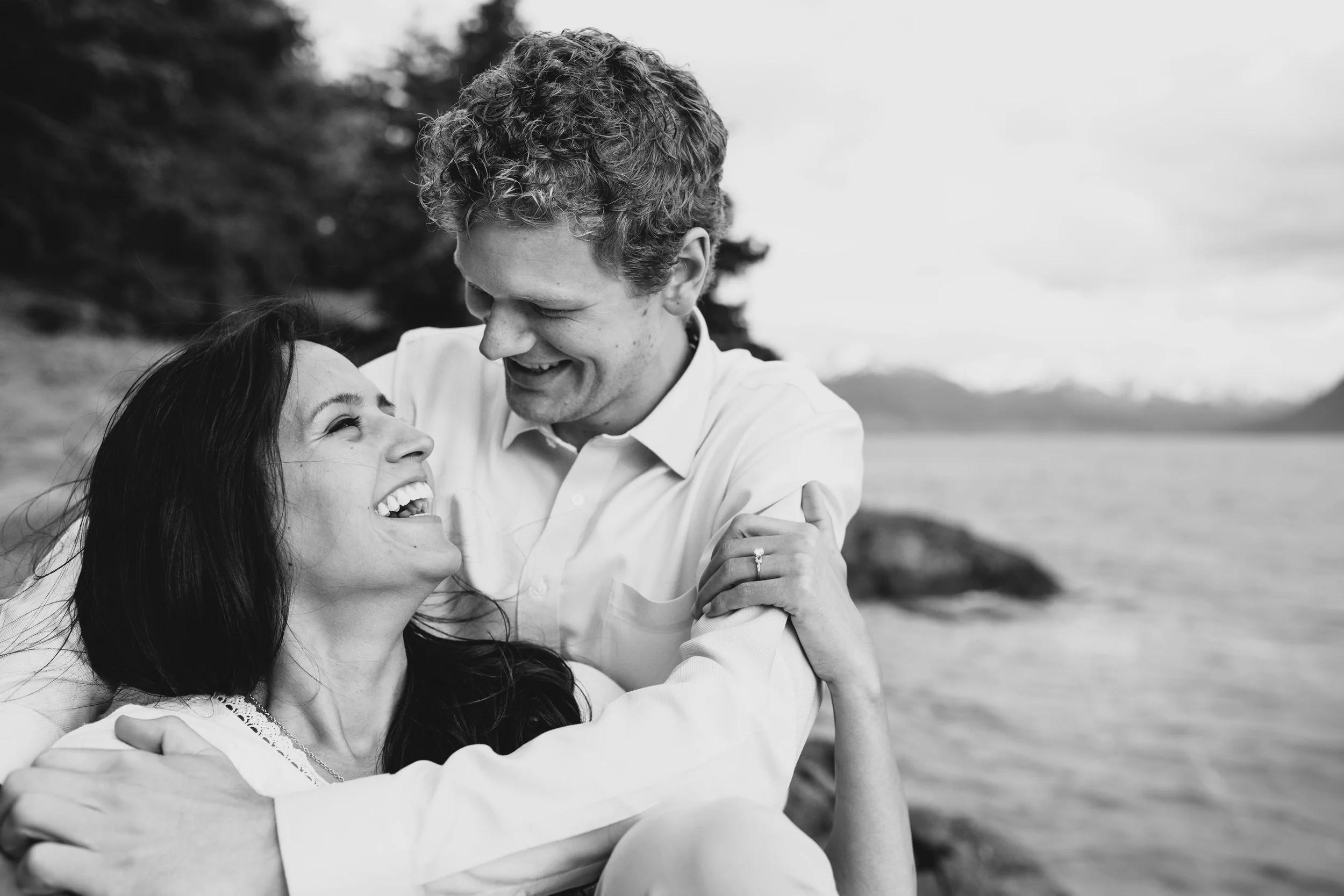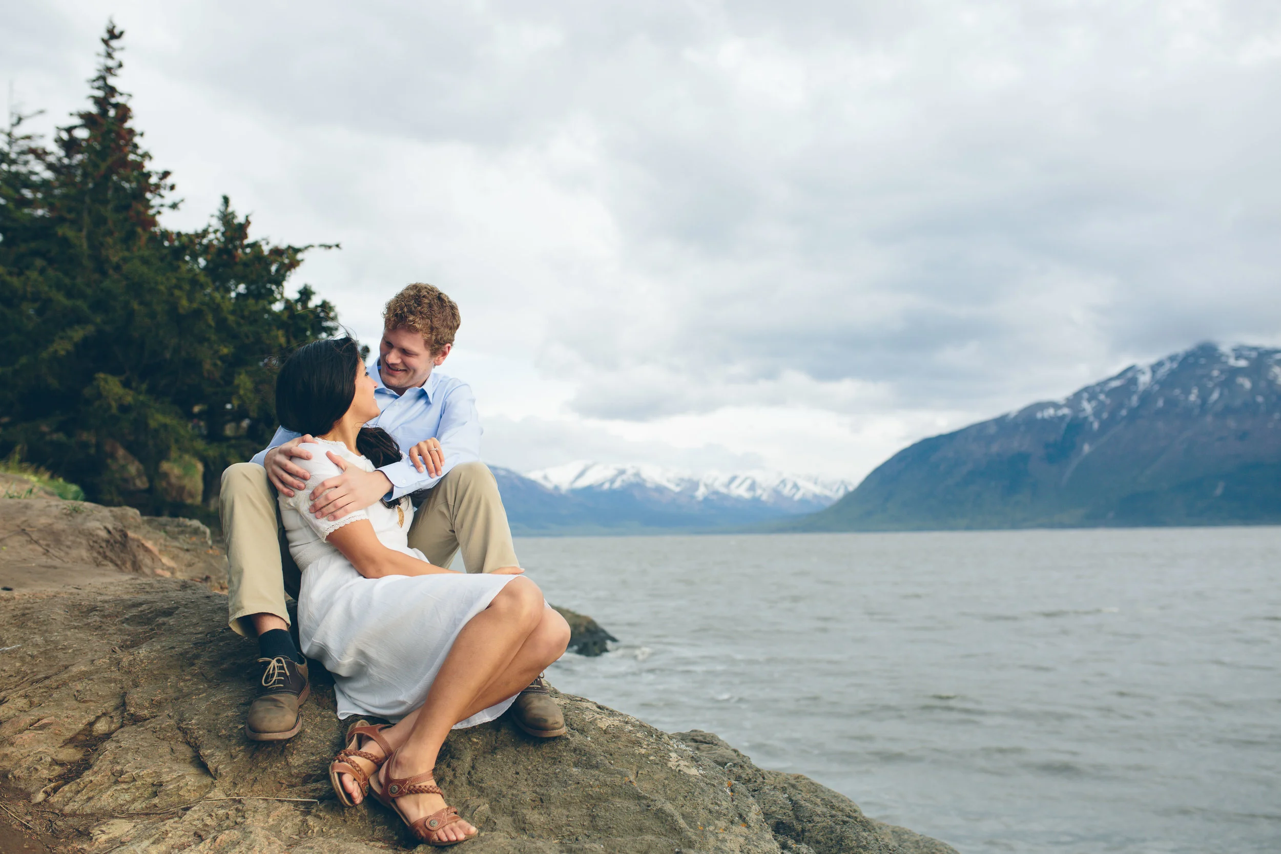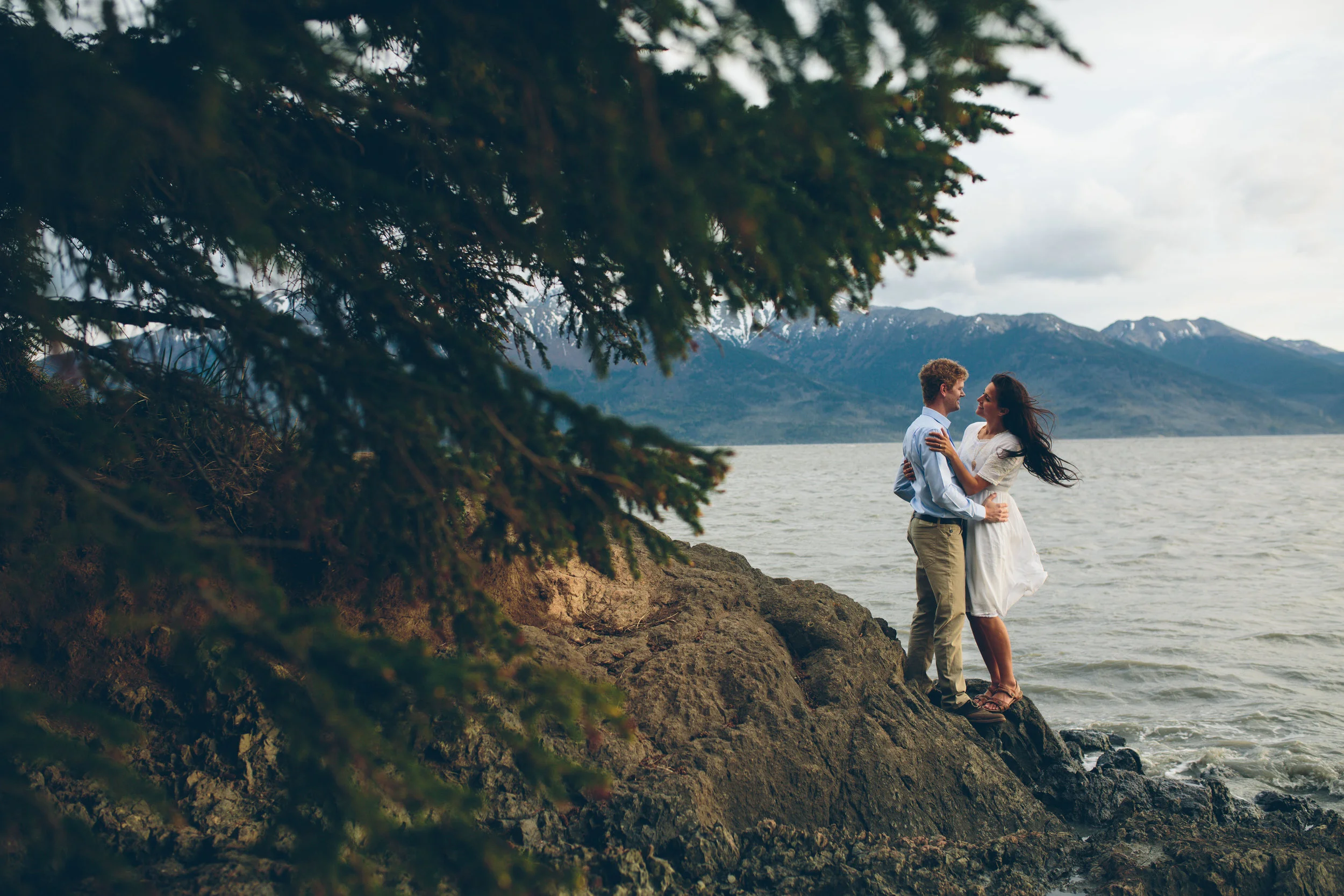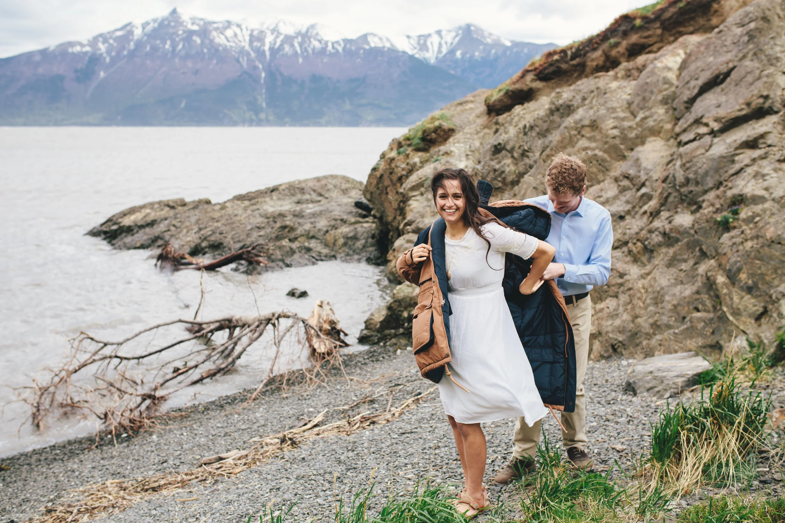 I met Hunter and Ashleigh at Beluga Point on a perfect, blustery evening. Cold-ish nights in May with overcast skies are some of my favorites, and my favorite to take photos-- which makes me a bit odd, I guess. But Hunter and Ashleigh were right there with me. "We're up for anything!" Hunter said (though sweetly grabbing a big puffy coat for Ashleigh before leaving the parking lot). Ashleigh told me she'd only been in Alaska for three days and couldn't believe the beauty of the spot along Turnagain Arm.